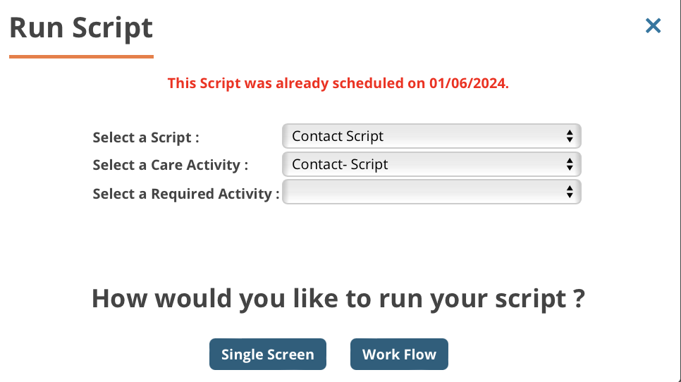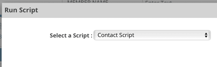 2. The Run Script pop up gives you the option to select the script you wish to use. Select Contact Script (or other).