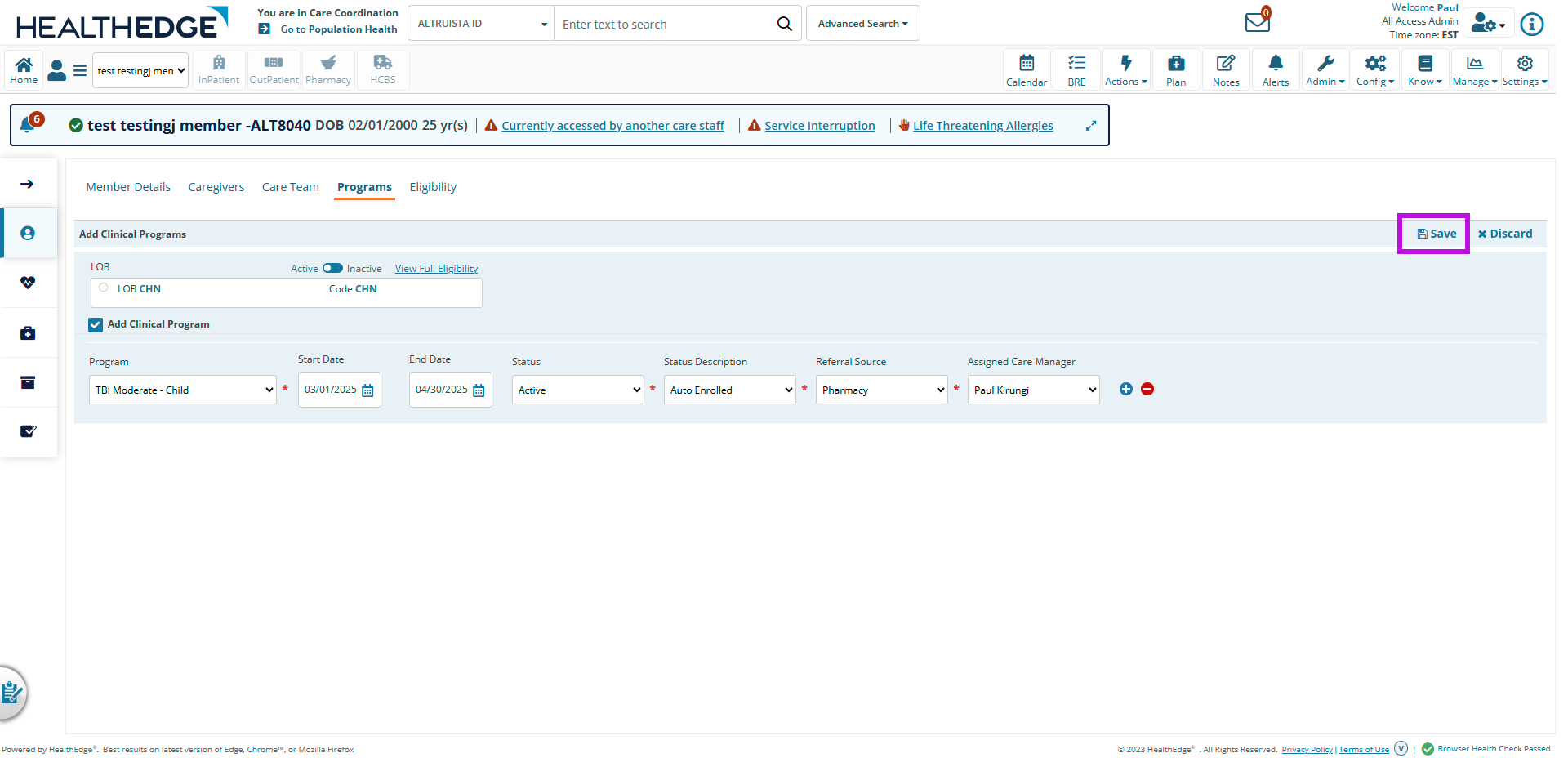 Set the Status to ACTIVE (if member has consented to TCM service).