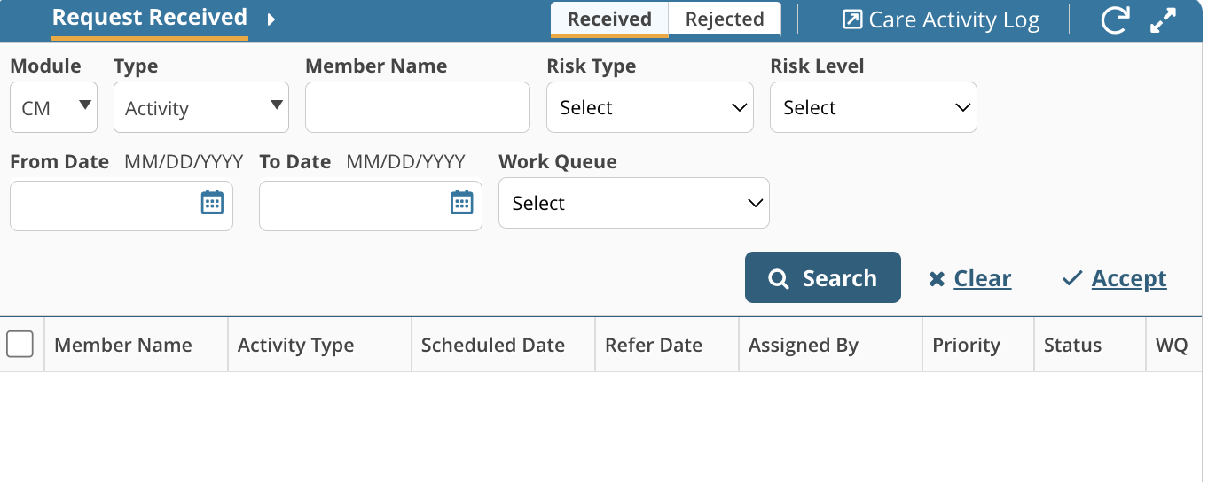 2. Members will be referred to you. Any member referrals will show up under Request Received on the lower right side. You must accept the referral in order for the member to be in your caseload and show up under My Members.