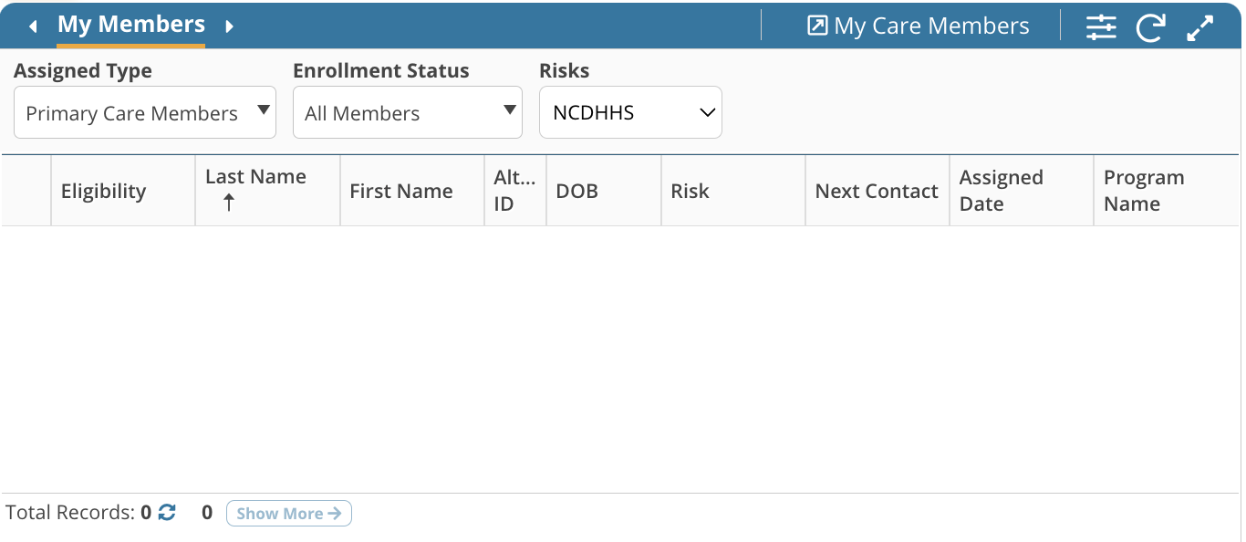 - Find the My Members tab on the Care Coordination Home Page