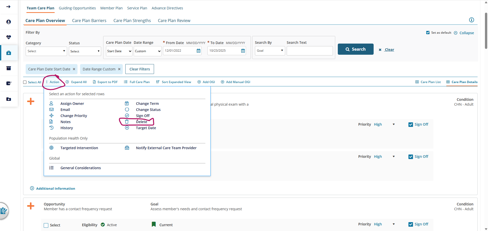 This article explains how to remove or delete a Goal (OGI – Opportunity, Goal, Intervention) from a member’s Care Plan in GuidingCare.